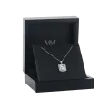 The Cristallo captures the essence of sophistication with a radiant cut moissanite, embraced by a double halo of pavé-set round moissanite stones. This exquisite pendant necklace features a link chain, meticulously designed for a graceful finish. Ideal for elegant ensemble enhancement, it pairs seamlessly with our Aura earrings for a cohesive, refined look.